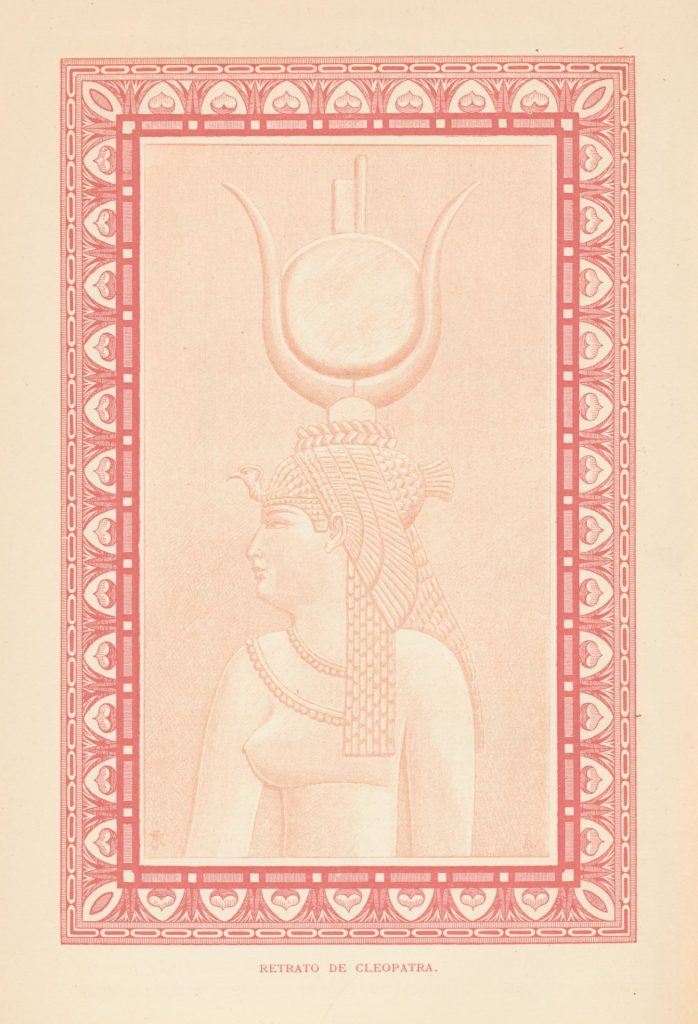 Frontispicio calcográfico con obeliscos llenos de motivos que imitan los jeroglíficos egipcios. Encontramos también la representación típica de un río por medio de una figura masculina con un jarrón del que mana agua. En este caso, el cocodrilo nos sitúa a orillas del Nilo. La obra de Caussin presenta en edición bilingüe grecolatina el texto de Horápolo junto con algunos fragmentos de Clemente de Alejandría y algunos ensayos propios sobre los jeroglíficos.