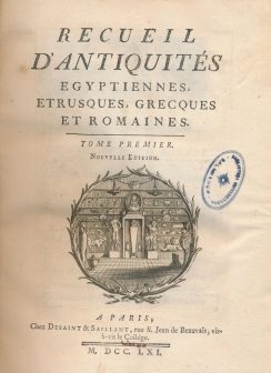 Su labor como coleccionista es más trascendente. Su estrategia era comprar piezas cuya procedencia conocía y que formaban parte de colecciones prestigiosas; por ejemplo, en el caso de las obras egipcias, se nutrió de la colección de Benoît de Maillet. Recibió también regalos, pero sobre todo se hizo con una red de corresponsales que buscaban para él objetos en Italia y otros lugares. Pero la colección no era un fin en sí misma sino un medio para adquirir conocimiento: dio lugar a la elaboración de su Recueil d’antiquités égyptiennes, étrusques, grècques, romaines et gauloises (7 vols. –el último publicado póstumamente–, París, 1752-1764) en la que el propio conde grabó las reproducciones. Cada tomo estaba organizado de la misma manera: antigüedades egipcias, etruscas, griegas y romanas. A partir del tercero incluyó también antigüedades celtas: Las piezas eran cuidadosamente medidas, pesadas y descritas, proporcionando de ellas toda la información que poseía (procedencia, nombre del anterior propietario, lugar de descubrimiento, si lo sabía, estilo y calidad de la pieza, su uso, etc.