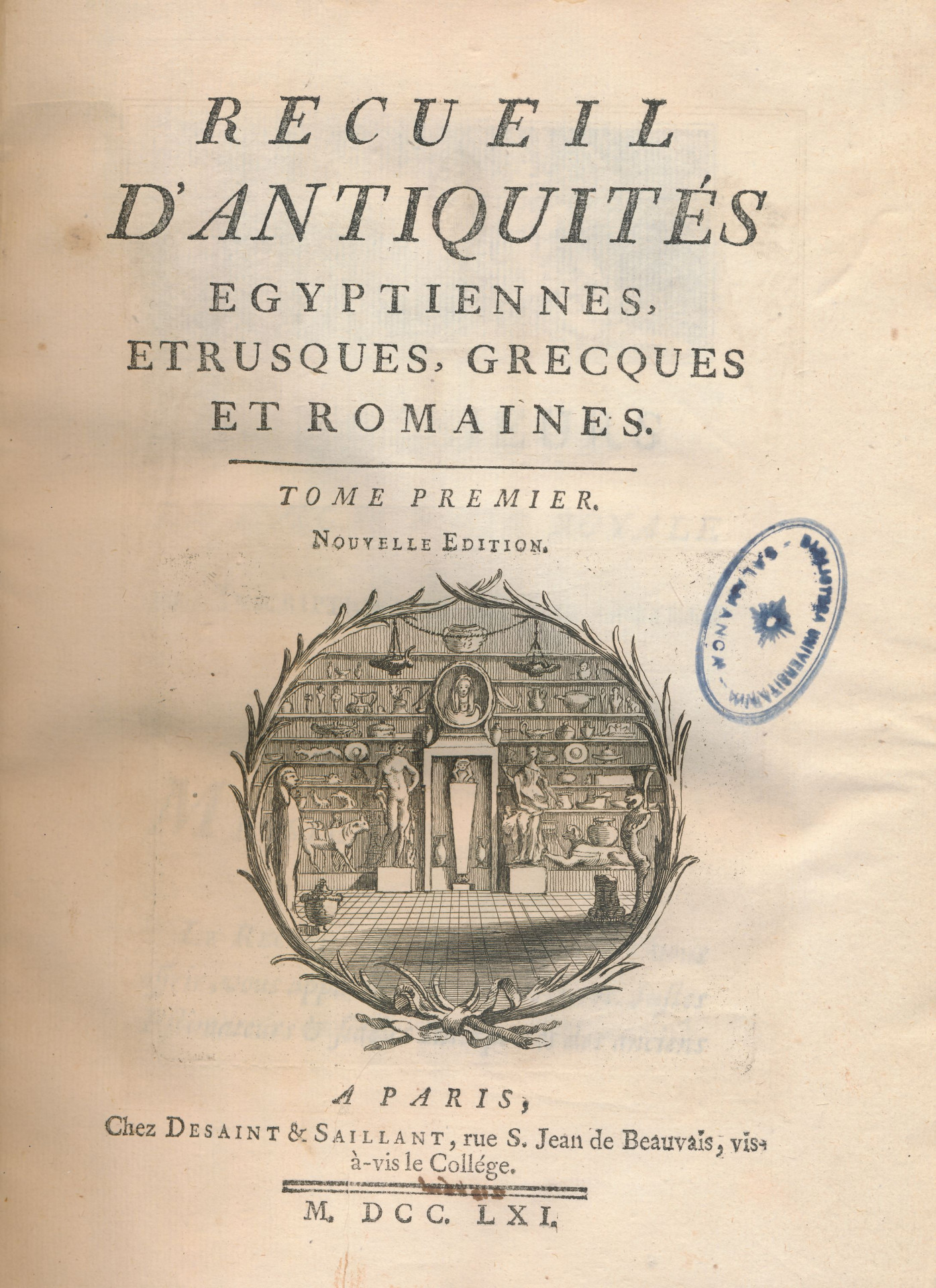 Anne-Claude-Philippe de Tubières de Grimoard de Pestels de Levi de Caylus (1692-1765), más conocido como el Conde de Caylus, pertenecía a una ilustre y acaudalada familia. De joven viajó por Italia, Grecia, y Oriente Próximo y este viaje despertó en él su interés por las antigüedades. Destacó como grabador, mecenas artístico, literato y anticuario.