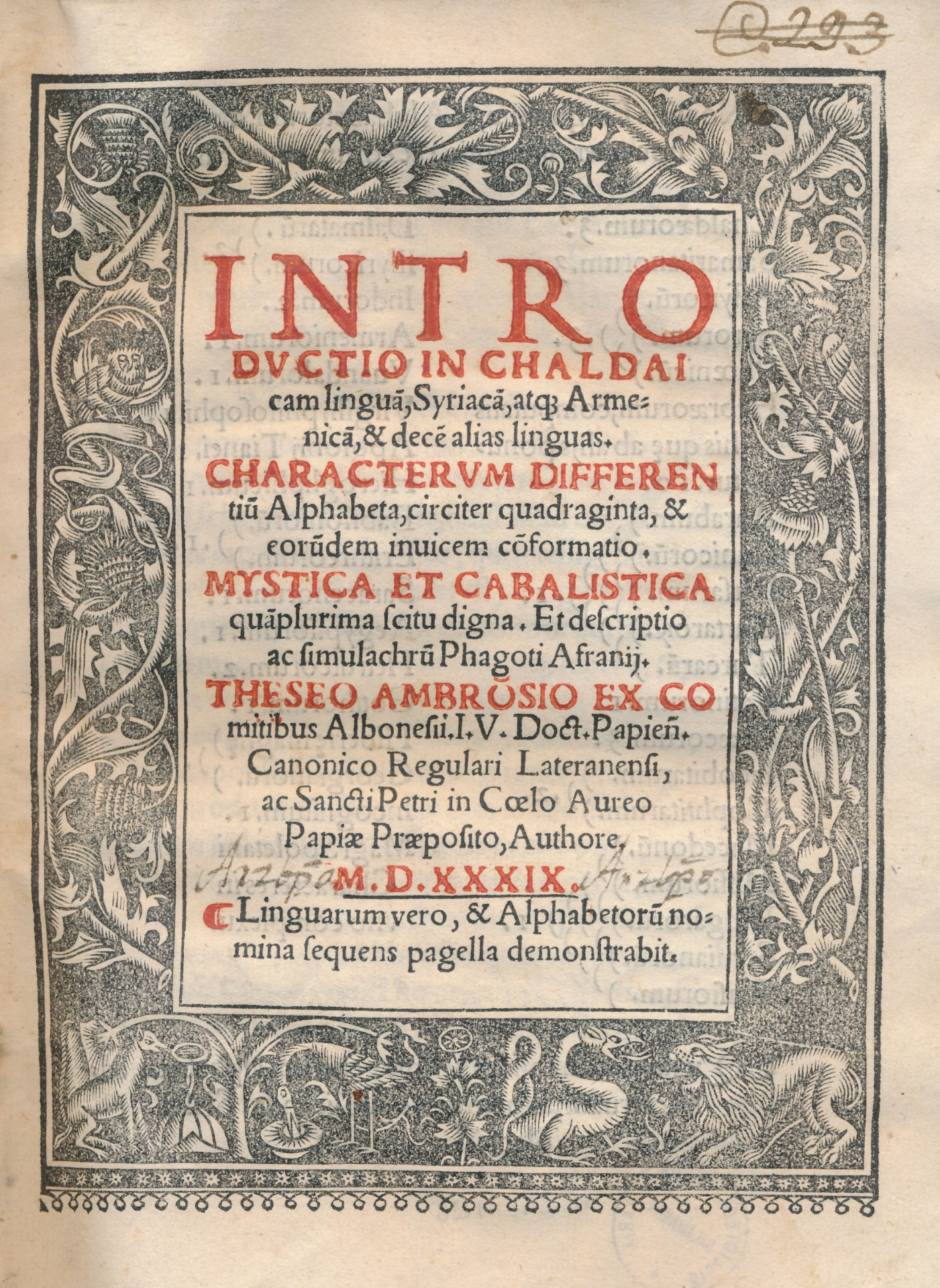 Lo más probable es que Ambrogio degli Albonesi naciera en Pavía en 1469 y adoptara después, como nombre de humanista, Teseo. Tras un período de estudios en Milán regresó a Pavía donde se doctoró en Leyes. Sin embargo, rechazó puestos civiles e ingresó en la Orden de San Agustín, lo que le llevaría a trabajar en Roma en el círculo cercano a León X. Allí empezó a estudiar hebreo con los eruditos judíos de la ciudad, y probablemente entre ellos se encontrase Obdías Sforno, el maestro de J. Reuchlin. Cuando llegó una misión maronita a entrevistarse con el Papa, Ambrogio fue parte de la comisión dedicada a traducir el misal siriaco de los legados y con uno de ellos, el joven subdiácono Elías bar Abraham, aprendió arameo y árabe. Tras la muerte de León X en 1521 Ambrogio regresa a Pavía con la intención de publicar un salterio siriaco pero el saqueo de la ciudad en 1527 destruye su biblioteca y su proyecto. Comienza de nuevo a recopilar materiales y se mueve entre Reggio, Ferrara, Roma y Pavía; en sus viajes toma contacto con G. Postel, maestro de importantes semitistas como G. Le Fèvre de la Boderie. Finalmente no llegará a componer el salterio siriaco que pretendía pero en su lugar creará con la ayuda del impresor G. M. Simonetta su Introductio in Chaldaicam linguam, Syriacam, atquem Armenicam en 1539, un año antes de morir.