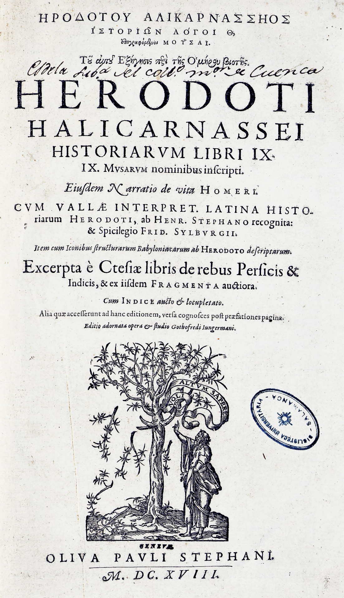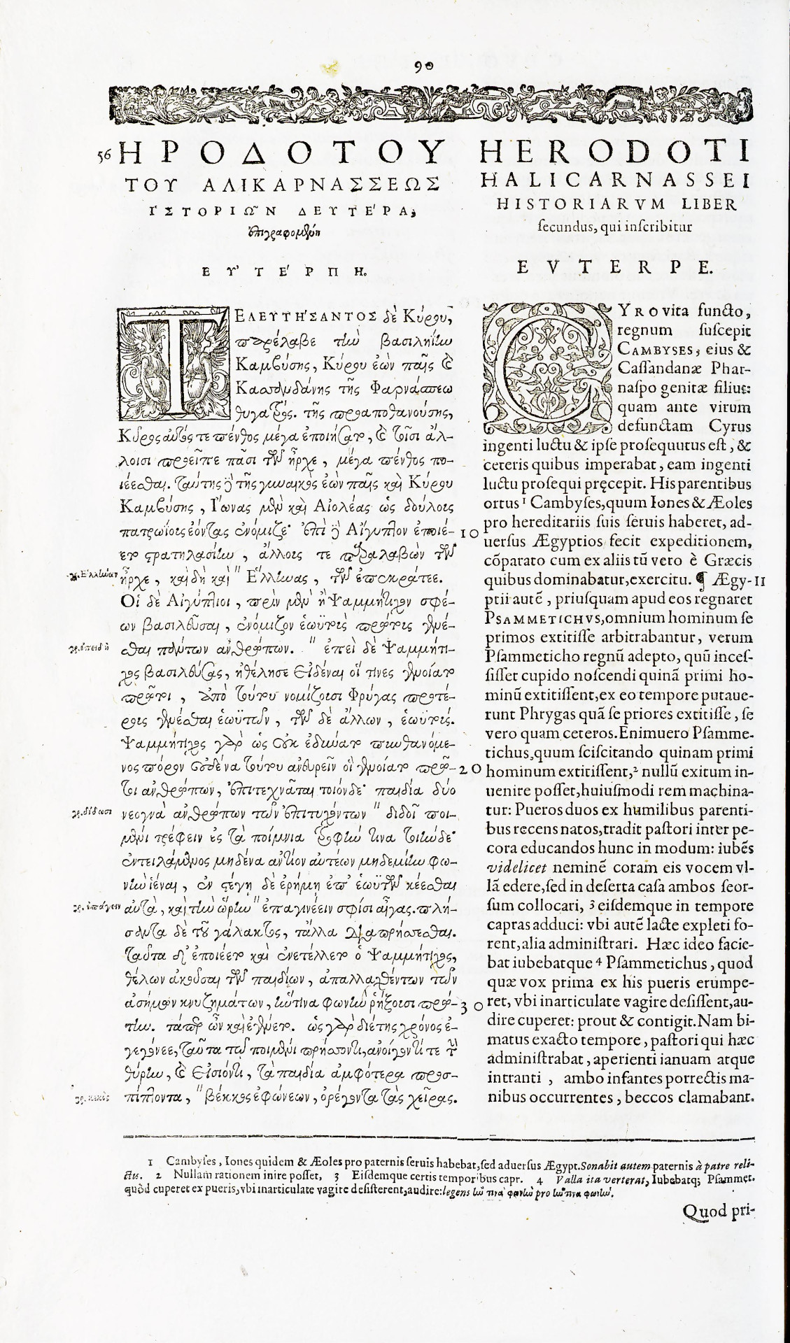 Esta edición presenta en columnas paralelas el original griego y la versión latina de Lorenzo Valla (1407-1457), revisada por Henri Estienne (1528?-1598). La traducción de Valla se publicó por primera vez en Venecia en 1474, pero la primera edición del texto griego se imprimió en la misma ciudad en 1502, en el taller del tipógrafo y humanista Aldo Manuzio.