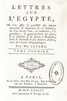 Claude-Etienne Savary (1750-1788), orientalista y traductor, estuvo en Egipto entre 1777 y 1779 y ofreció en esta obra su visión sobre el país contemporáneo e información, generalmente extraída de otros autores, sobre su grandeza pasada. Las descripciones de los paisajes y de sus experiencias son generalmente idílicas: los viajes, los lugares, las mujeres, etc. El éxito extraordinario del primer volumen le incitó a prolongar su relato, ahora ya completamente imaginario, en otros dos tomos, que igualmente le proporcionaron gran fama. De hecho, él no fue más allá de las pirámides de Gizah, pero sus cartas describían desde Alejandría y el Delta del Nilo hasta la primera catarata, algo que le fue reprochado por Sonnini, que coincidió con él en Egipto y le conocía bien.