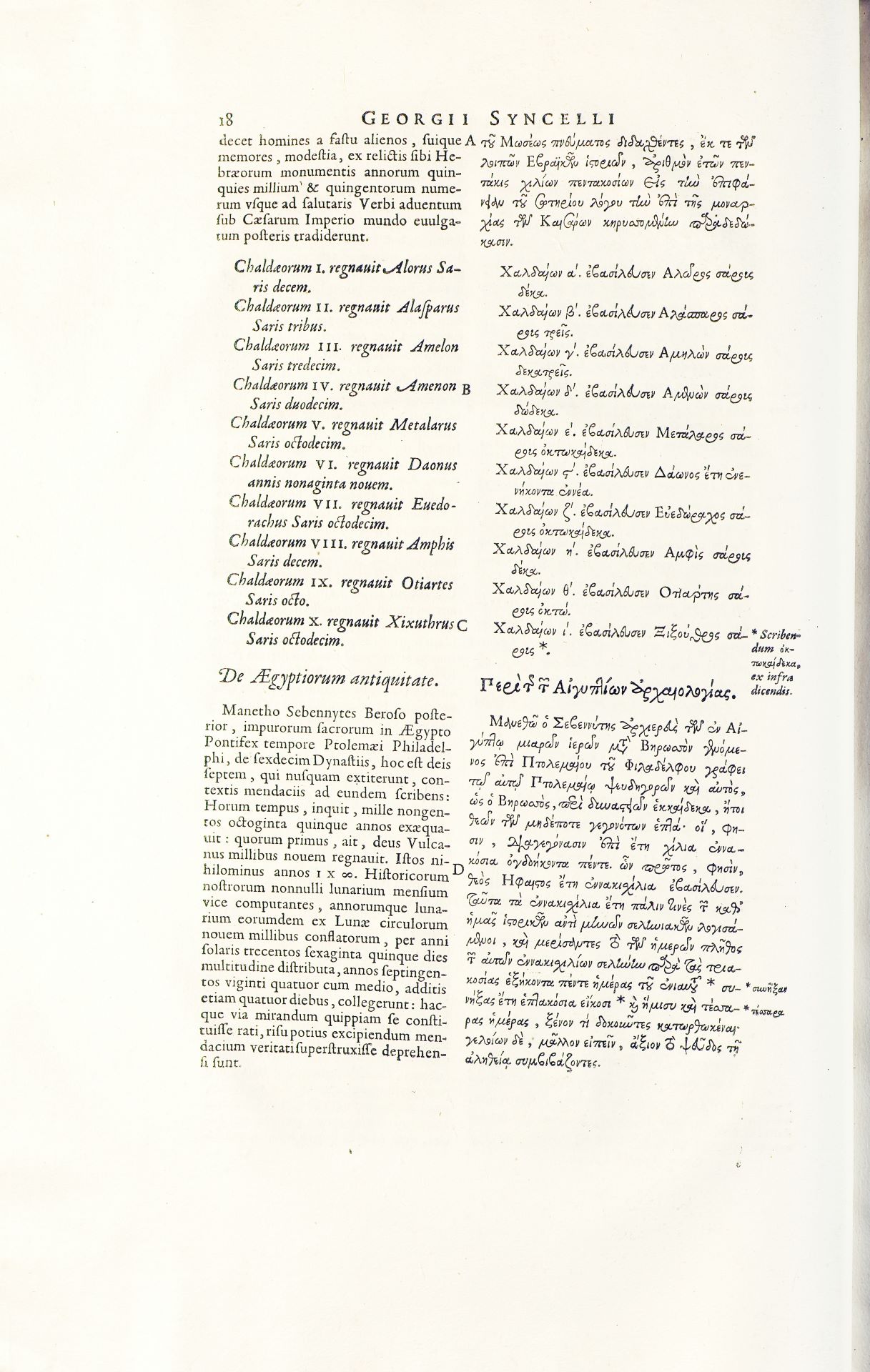 A través de las obras de otros autores como Eusebio de Cesarea o Sexto Julio Africano, la obra del cronógrafo bizantizo Jorge Sincelo transmite las dinastías reales egipcias casi un milenio después de Manetón, su fuente última.