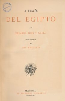 Eduard Toda i Güell, A través del Egipto, Madrid: [s.n.] (Tip. de El Progreso Editorial), 1889 (Biblioteca de Filología L/S2A 908(620) TOD tra).