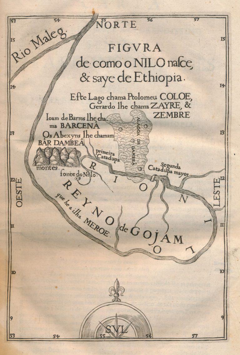 Otra incógnita que planteaba el segundo río más largo del mundo era el de su nacimiento, el problema de sus “insondables fuentes” (Heródoto), situadas en «regiones que nunca han sido vistas» (D. Sículo). Ubicadas en unos míticos “montes de la Luna” por los geógrafos antiguos, será un jesuita español, Pedro Páez, quien descubra en Etiopía los manantiales del Nilo Azul a principios del siglo XVII, pero habrá que esperar dos siglos más hasta dar con los del Nilo Blanco.