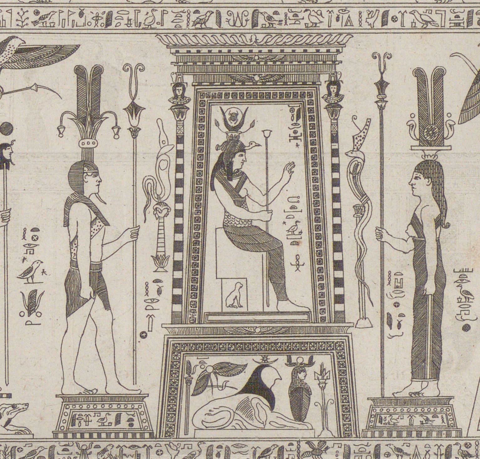 La imagen fue reproducida en muchos de los tratados sobre Egipto. Esta procede de Caylus, Recueil d’antiquités egyptiennes, etrusques, grecques et romaines, tomo VII, París 1767.